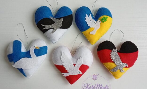 Show your pride or send a meaningful gift with these symbolic hand-stitched hearts. Each ornament features a national flag and its symbolic bird (like the Estonian Barn Swallow, Ukrainian Dove of Peace, or Finnish Swan). I can create a custom heart for any country with the colors and bird of your choice.