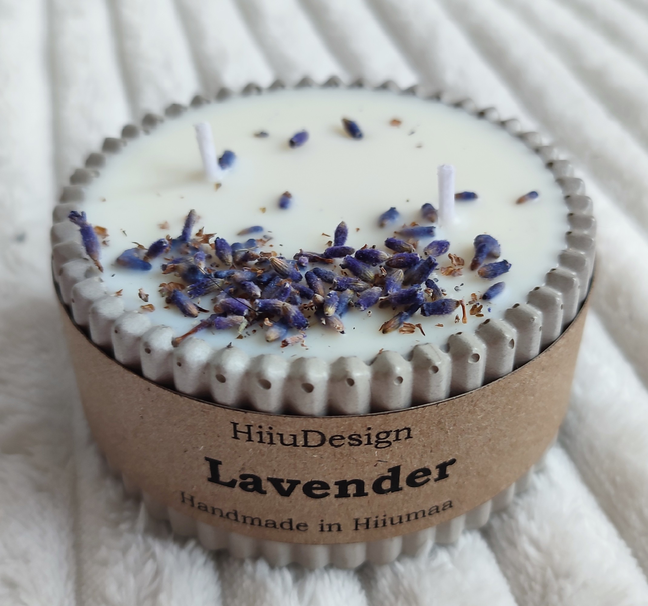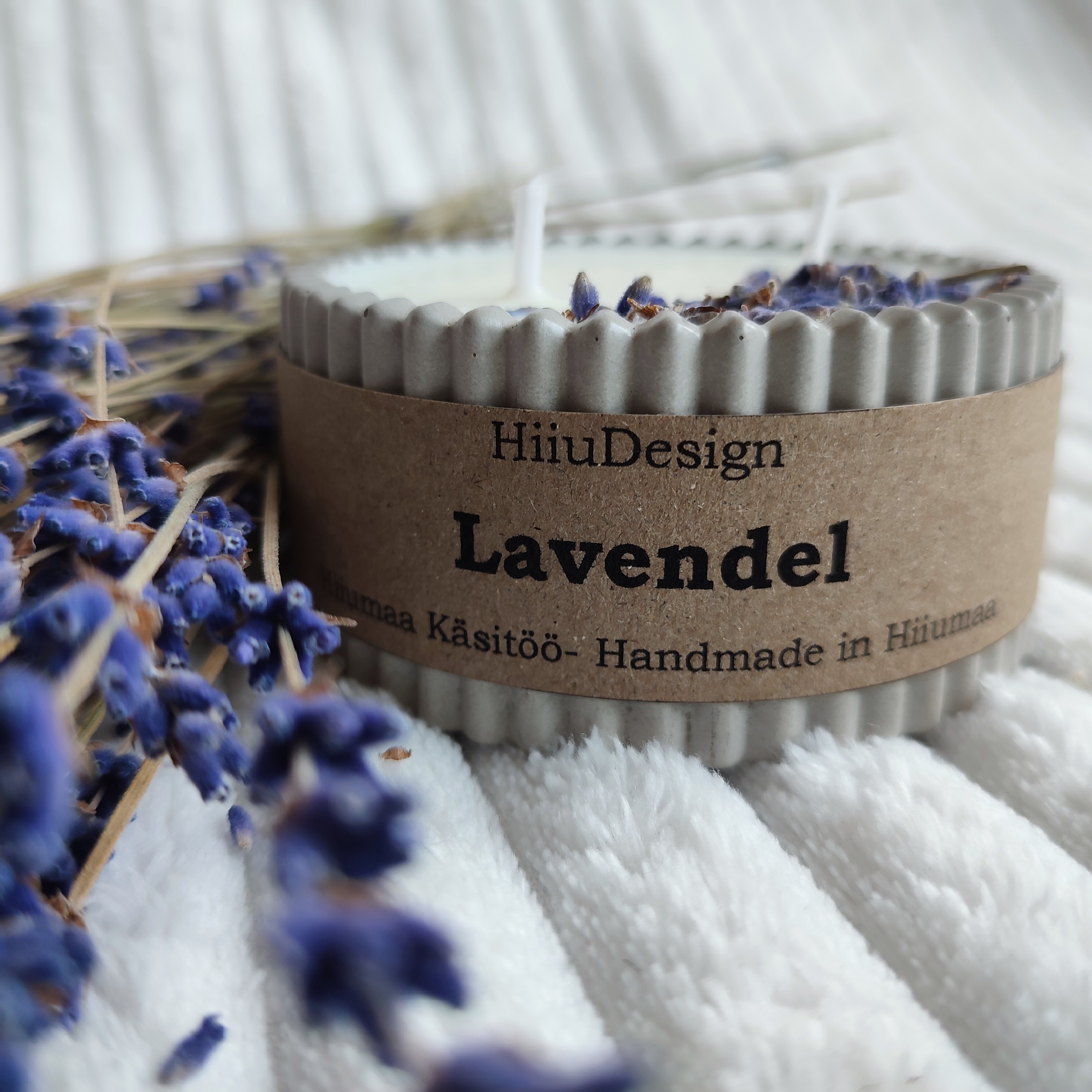 HiiuDesigni lavendliküünlal on rikkalik, lilleline ja ürdine aroom, mis leevendab stressi ja soodustab und.