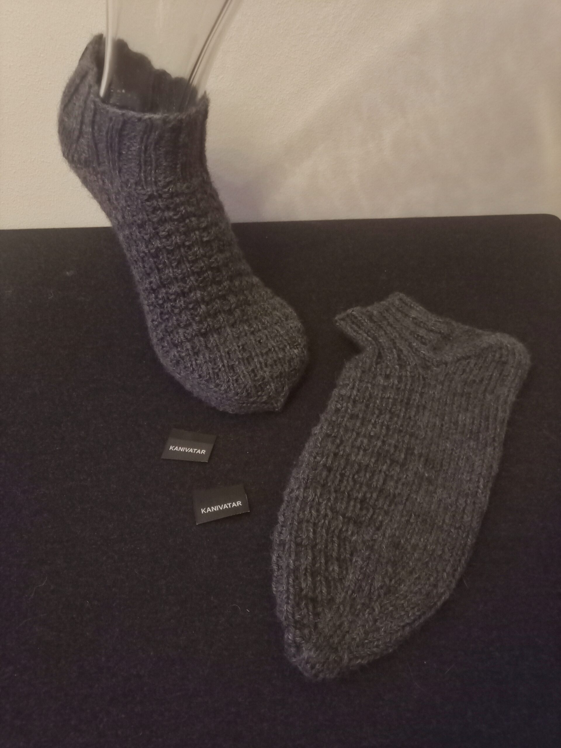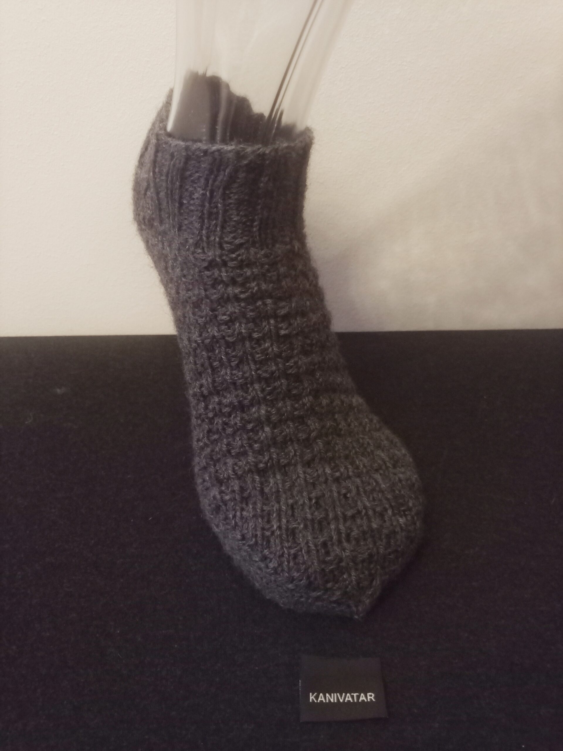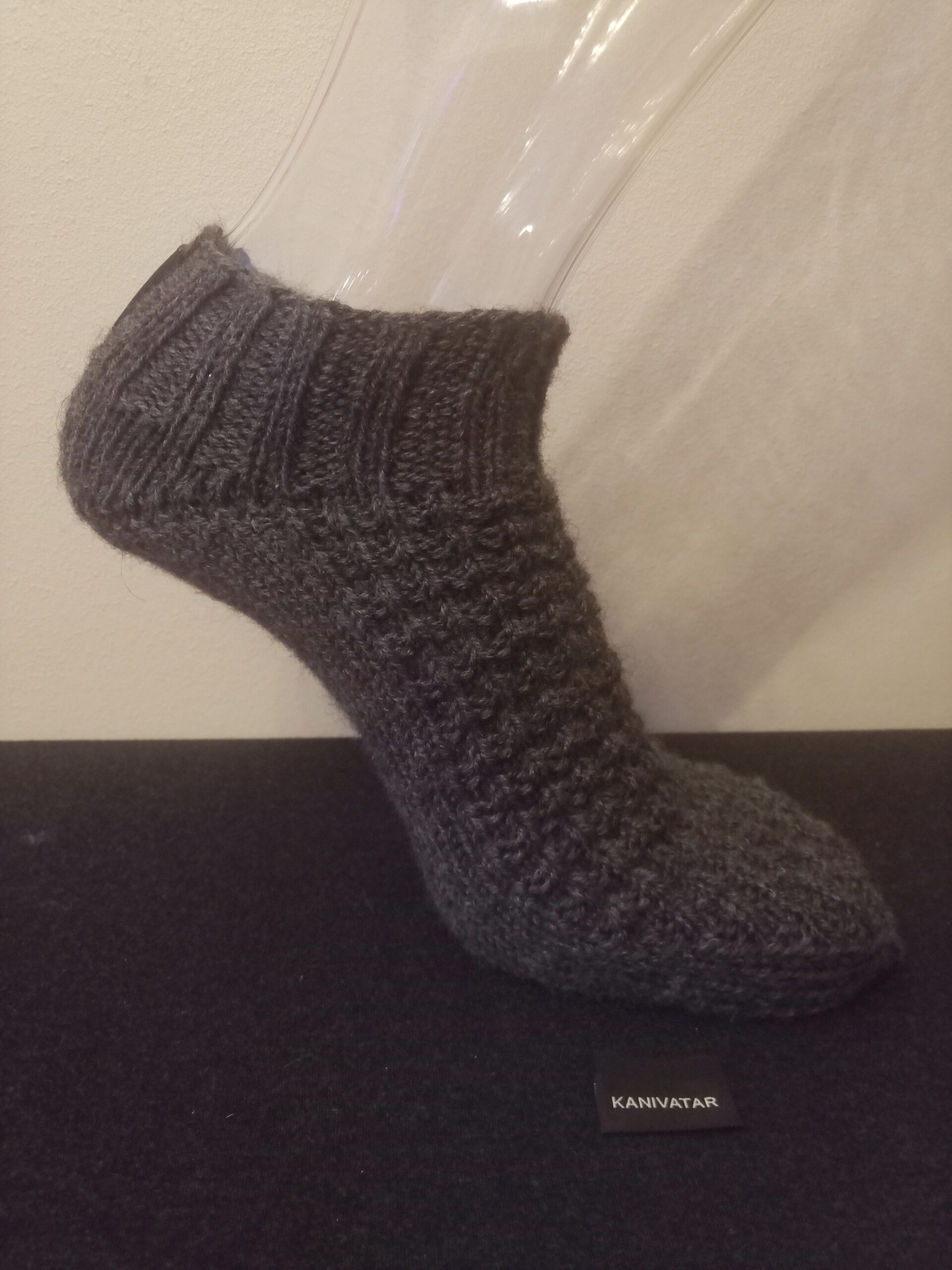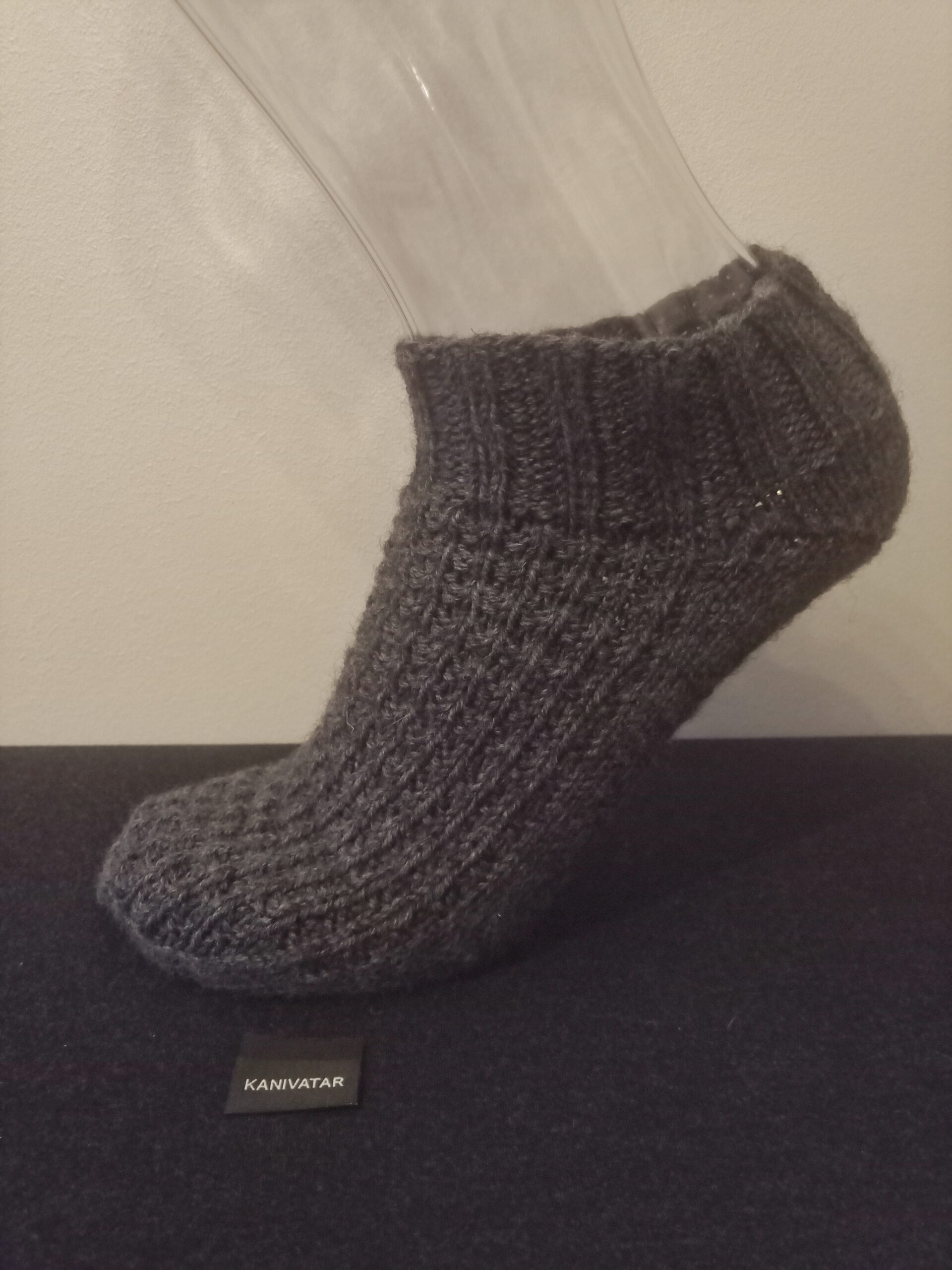 Kalevi-sukka on käsin neulottu lämmin ja kestävä varreton villasukka. Koko: 42 Materiaali: 40% villa, 35% akryyli, 25% polyamidi