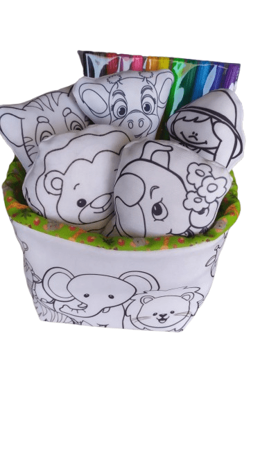 E mais: a embalagem também é feita de tecido e pode ser pintada e lavada quantas vezes a criança quiser — ela se transforma em um lindo cachepô para guardar os brinquedos.